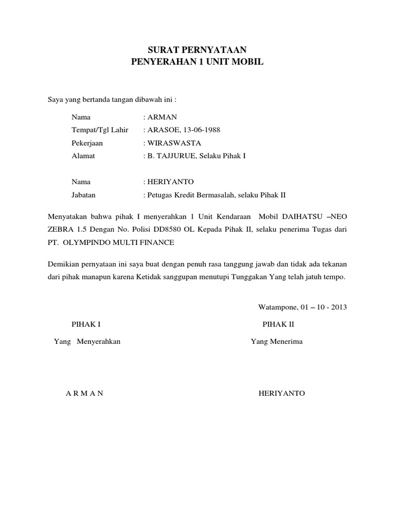 Surat Kuasa Kepemilikan Kendaraan / Surat Pernyataan Kehilangan Bpkb Nanix : Yuk simak penjelasan berikut, agar anda lebih paham.. Surat kuasa harap segera dikirim maksimal 30 hari setelah submit lhkpn. Yang tidak memiliki dokumen kepemilikan dengan nilai perolehan di atas rp100.000.000,00 (seratus juta rupiah) per unit/satuan, yakni fotokopi berita acara serah terima (bast) perolehan barang dan dokumen lainnya. Surat kuasa atas nama yang bersangkutan (pn), pasangan dan anak tanggungan yang berusia lebih dari 17 tahun (bertandatangan diatas meterai rp.10.000) agar mengirimkan dan melengkapi kekurangan dokumen pada tahun pelaporan saat ini. Fotokopi dokumen lainnya, seperti surat tanda nomor kendaraan (stnk) atau berita acara serah terima (bast) terkait perolehan barang; Yuk simak penjelasan berikut, agar anda lebih paham.